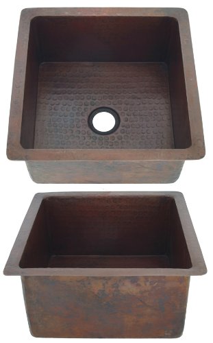 Copper Potter 15 Inch Diameter Hammered Square Bar Prep Sink