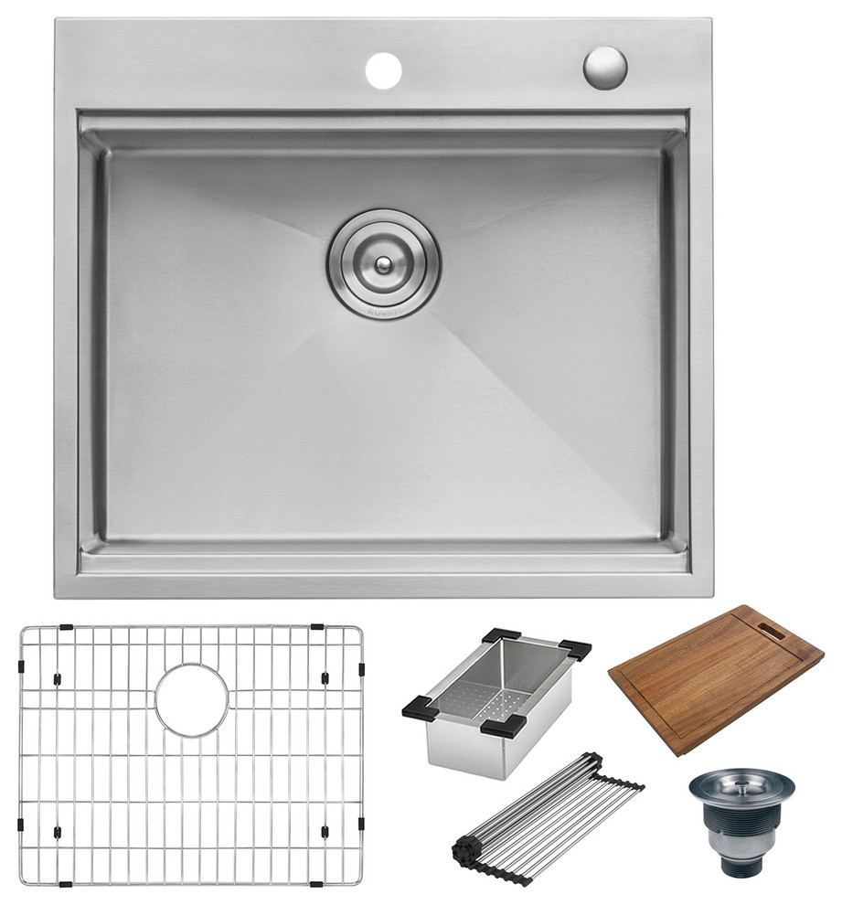 Kraus Kp1ts25s1 25 Inch Zero Radius Topmount Single Bowl Kitchen