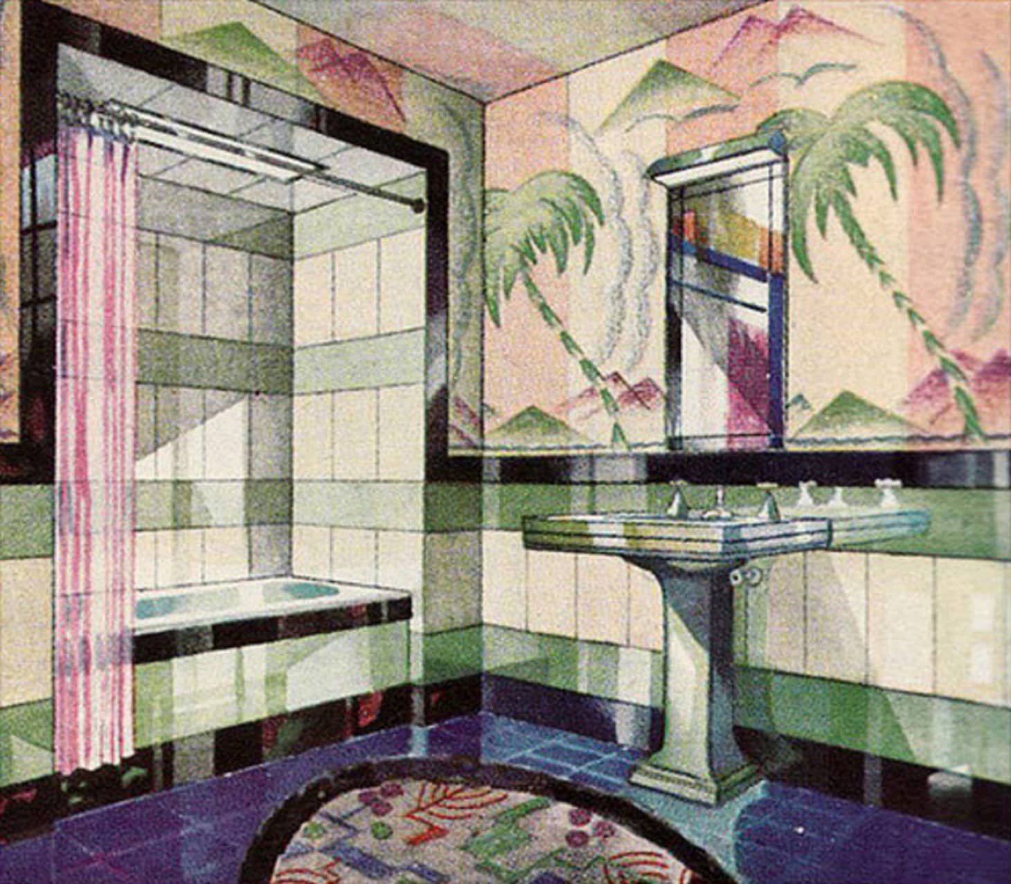 1920s House Retro Deco Bathroom Home Interior Design Tile