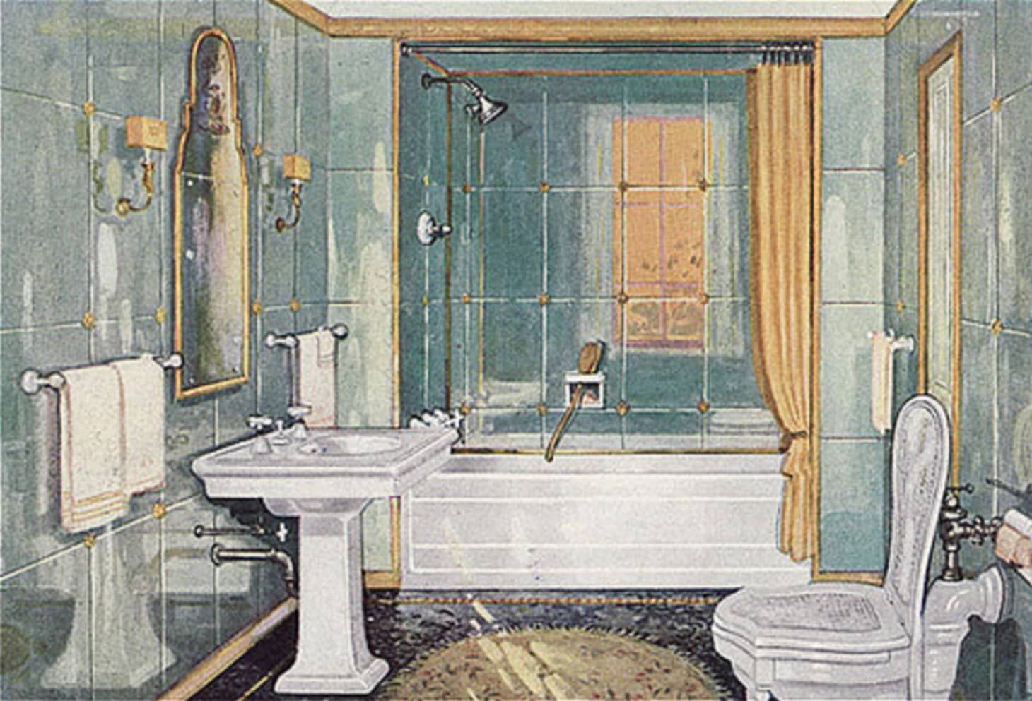 Illustration Picture Of A 1920s 1920 Bathroom With White Porcelain