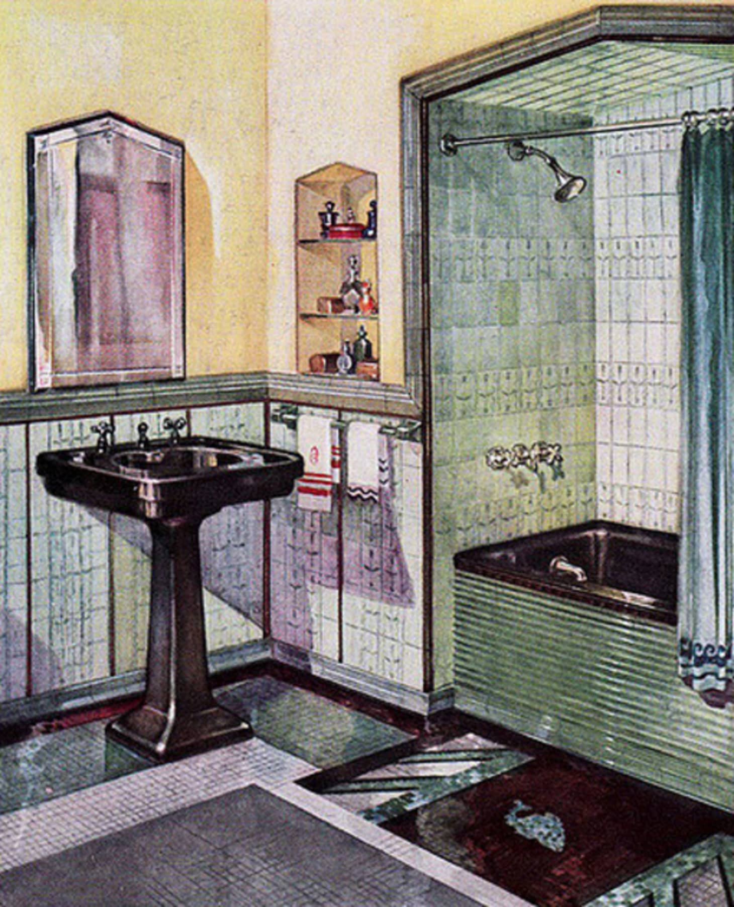 A look at the evolution of styles colors and uses for home bathroom tile in the 20th century. Home interiors bathrooms 1920s bathrooms. 1920s bathroom tile designs.
