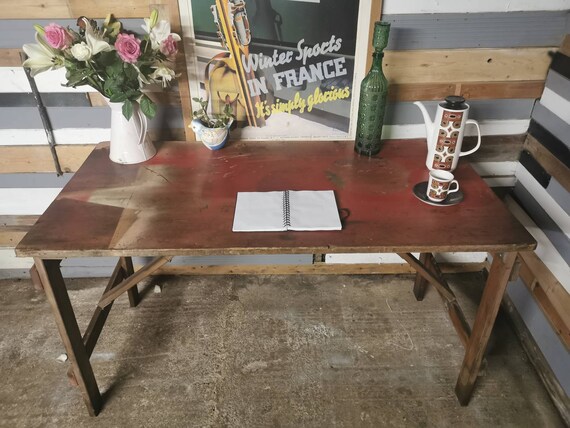 Vintage Retro Mid Century 1950s Oak Trestle Fold Out Dining Etsy
