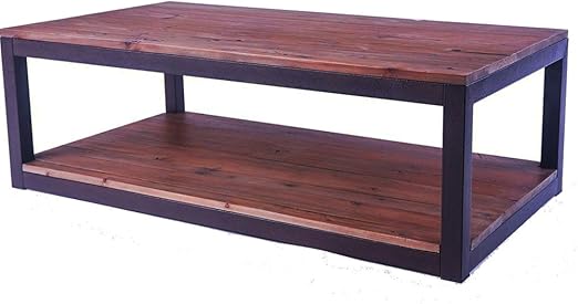 Amazon Com Farmhouse Coffee Table With Shelf Rustic Vintage Metal