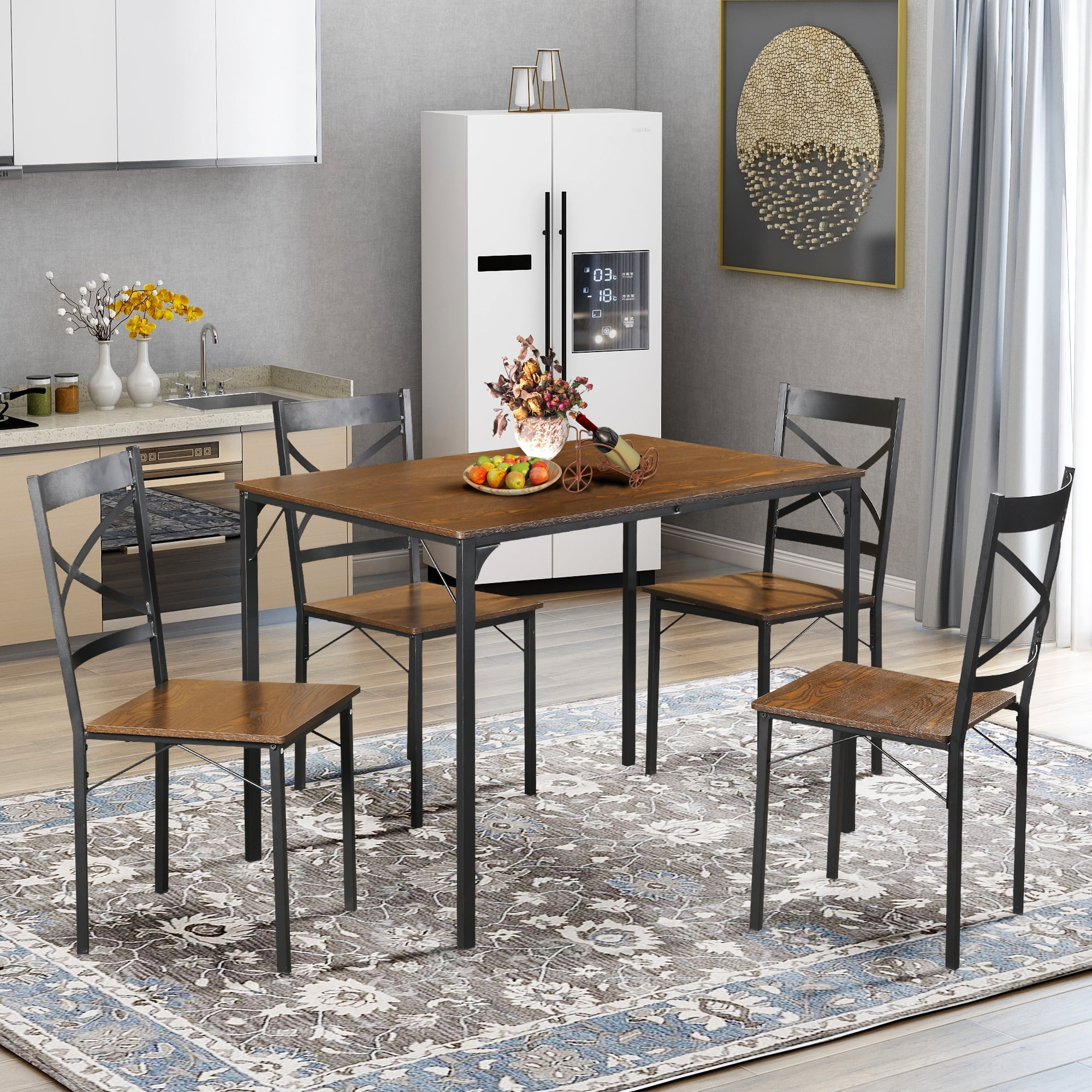 5 Piece Wood Dining Table Set Home Kitchen Table And Chairs For 4